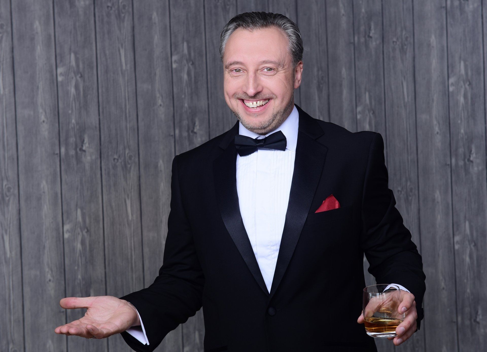 schlüpft er nun in die feine Abendgarderobe und ist der galant charmante und etwas vorlaute Gentleman mit der Vorliebe für kühle Drinks...